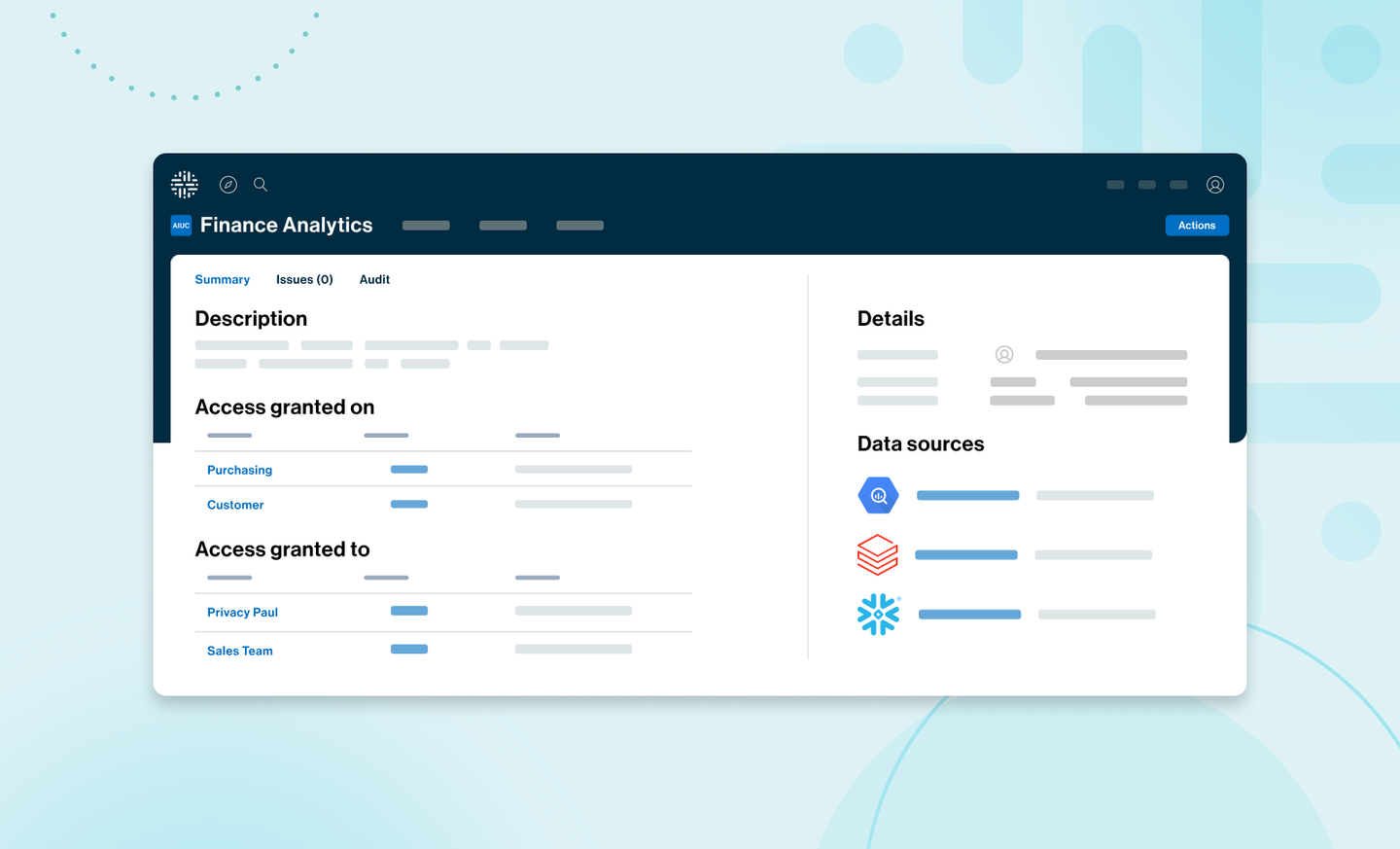 - Centralize access governance across platforms: Teams can manage access controls for Snowflake, Databricks and BigQuery in one place, improving oversight and reducing manual overhead