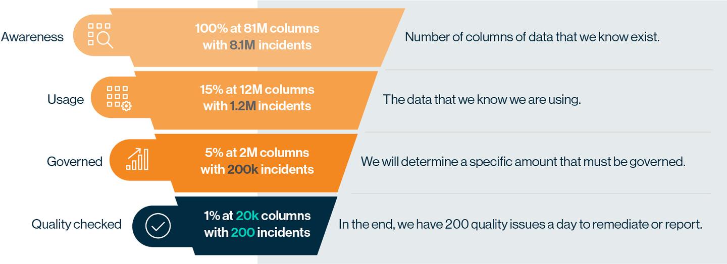 While we of course want to help companies aspire to 100% data quality, it is important to start with wins in data governance, demonstrate value, and scale up. Starting with highly used, critical data is key to showing high-ROI