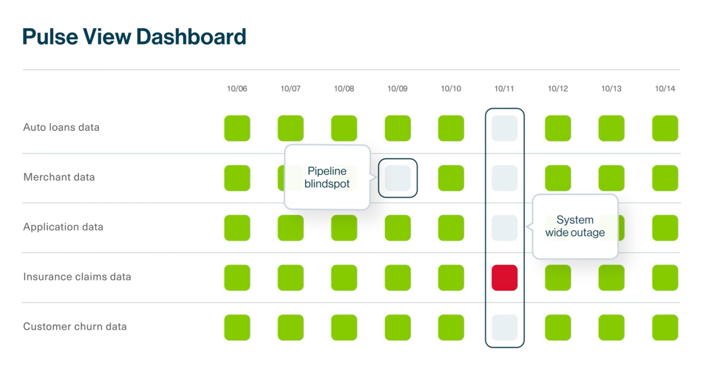 In the screen grab below, you can see how the Pulse Dashboard provides a heat map view of data pipeline performance.