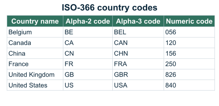 However, not all code sets are so cut and dry. Take something like a country code, again seemingly simple, but even the International Organization for Standardization (ISO) defines codes for countries in different ways under ISO-3166: