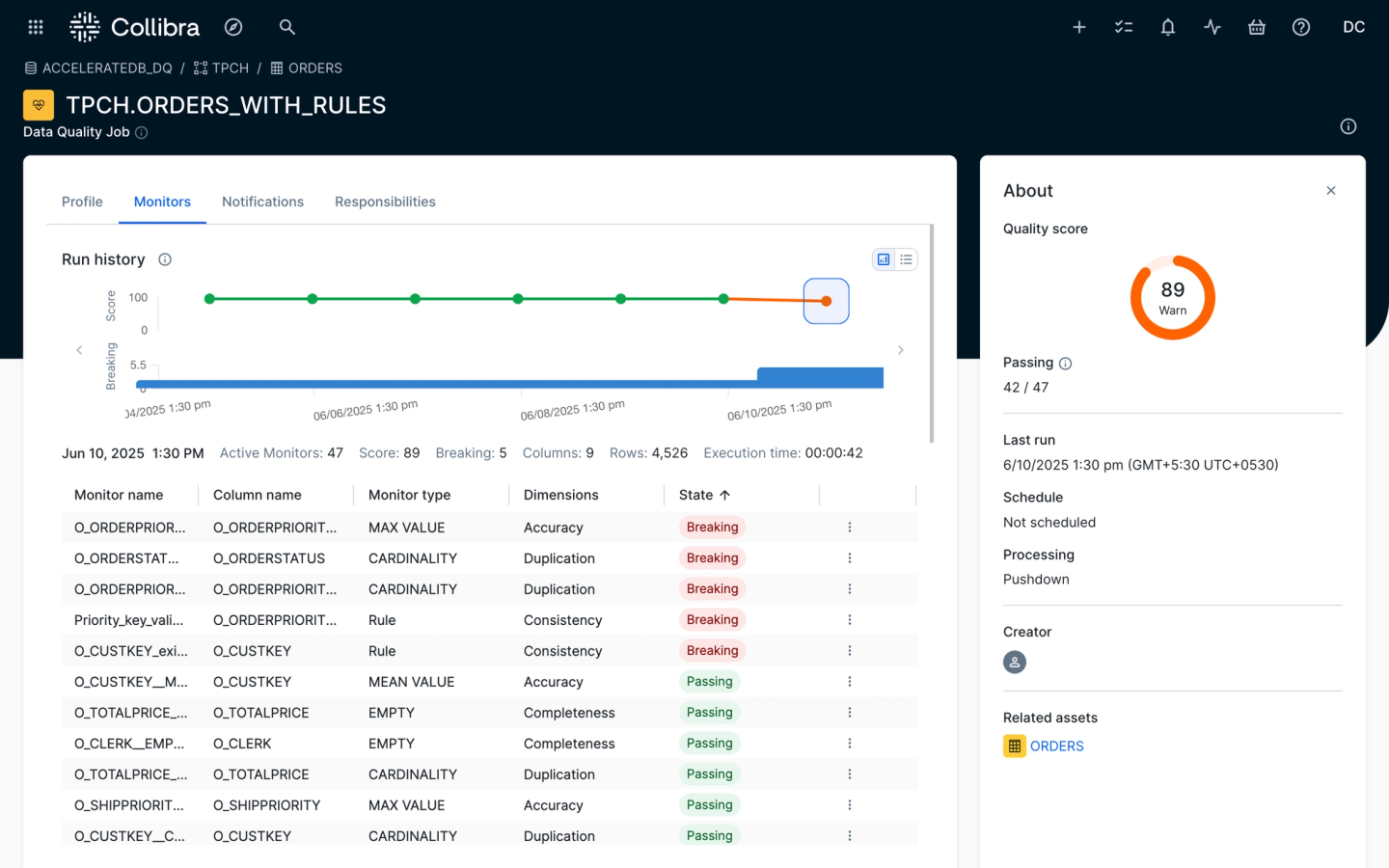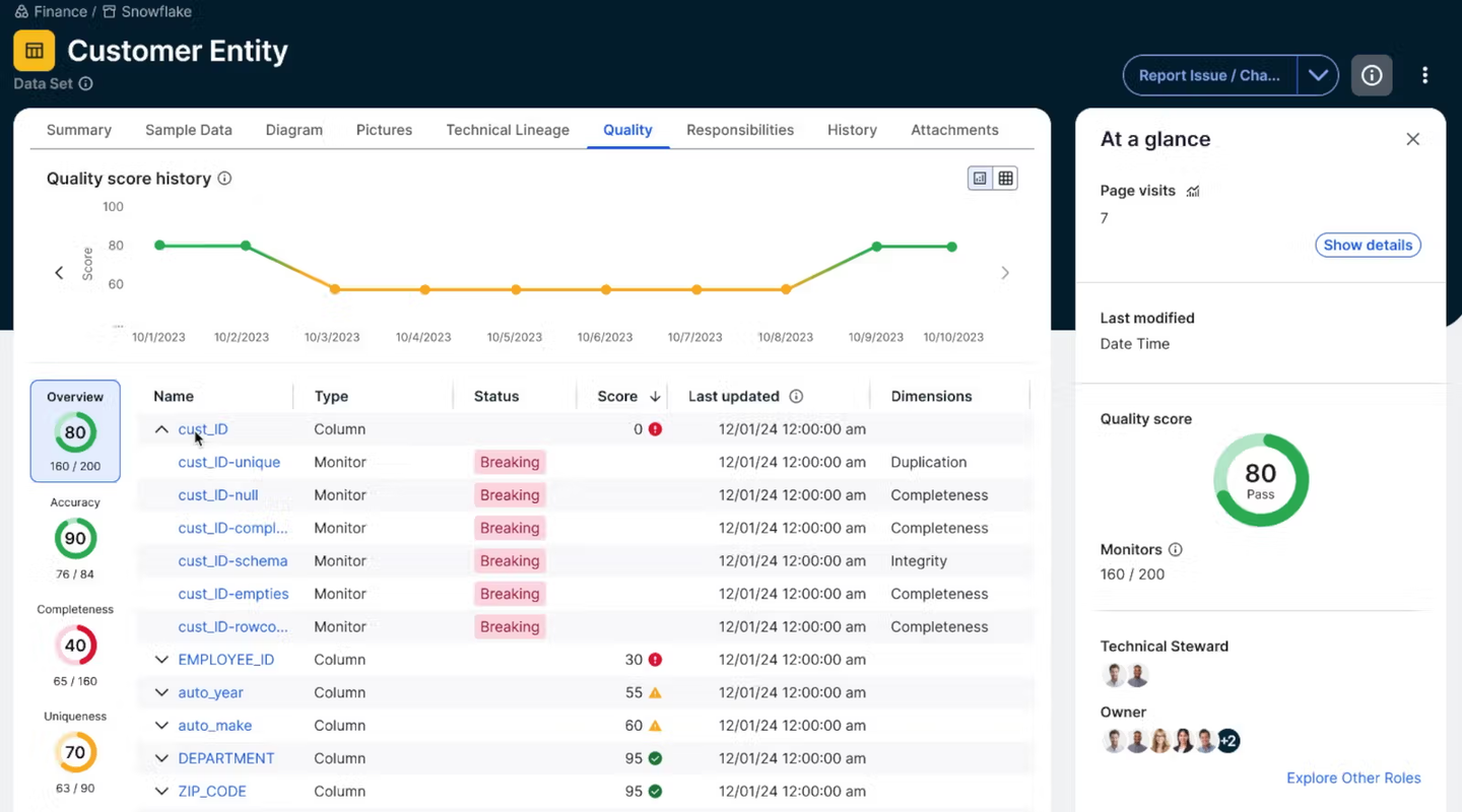 You can’t fix what you can’t see. Collibra Data Quality & Observability helps eliminate data quality blind spots. Automate quality and provide a unified view for all teams to minimize downtime, reduce risk and increase trust. Deliver Data Confidence™.
