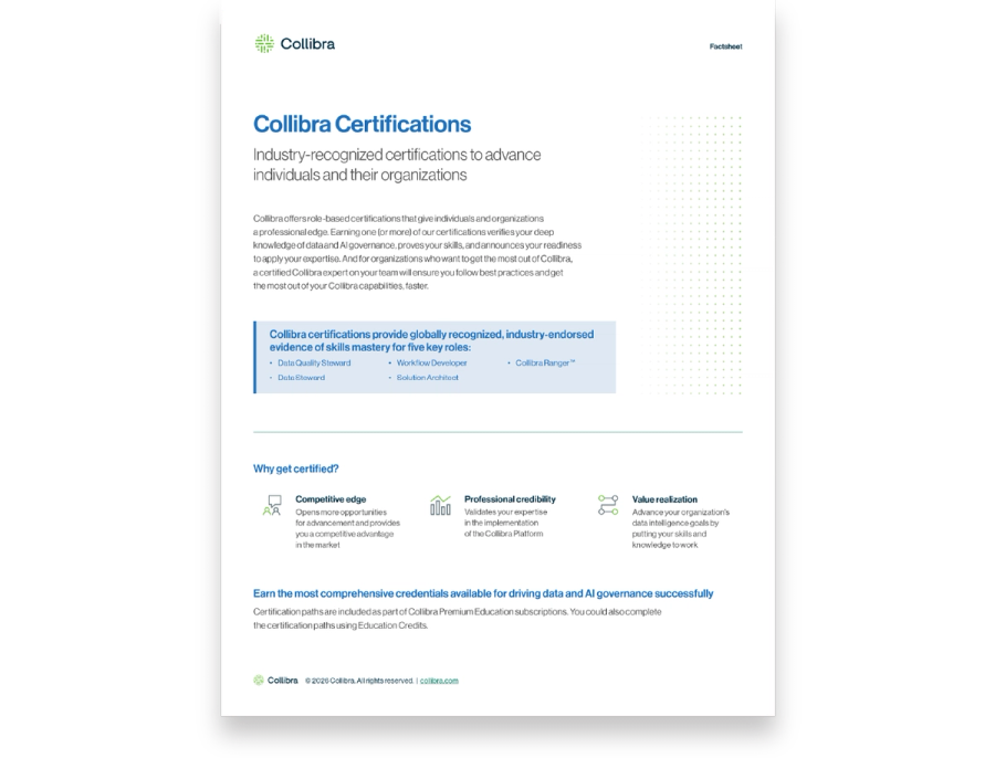 The Collibra resource library is our collection of individual resources created to help you along your journey to do more with trusted data.