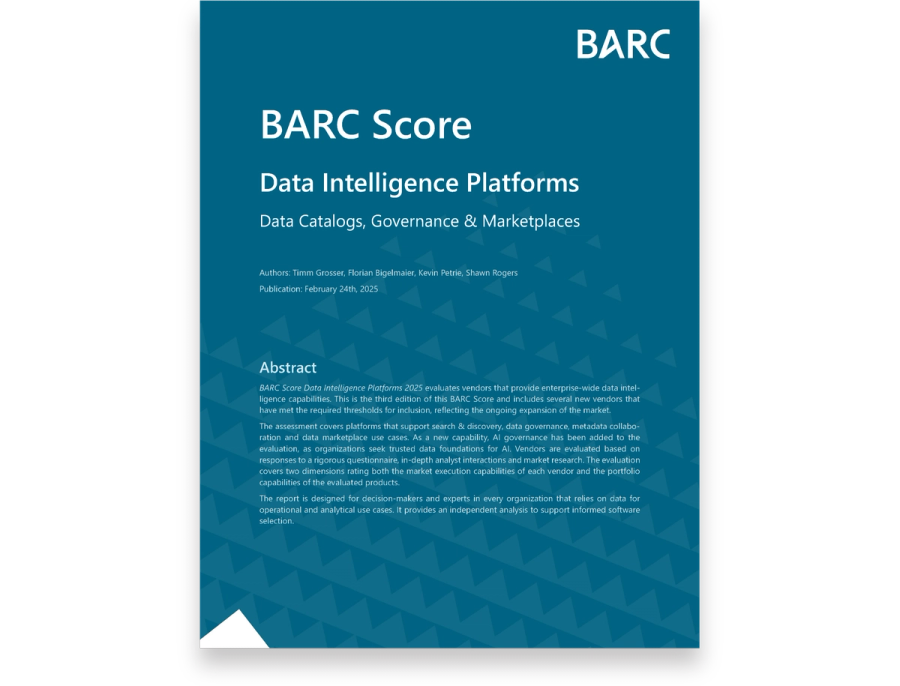 Unlock the BARC Score Data Intelligence Platform 2025 report to: