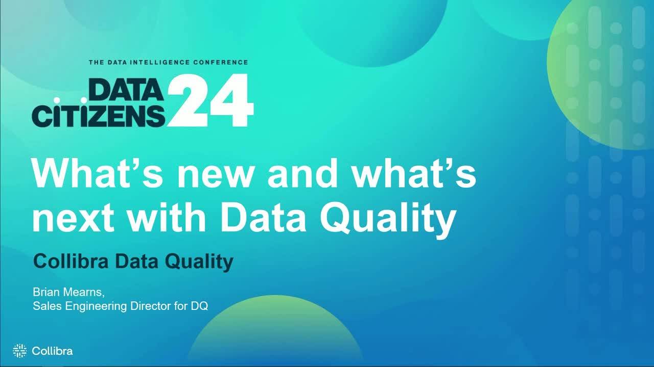 Organizations need to understand the level of accuracy and completeness of data products to ensure appropriate use. Clear, understandable data quality metrics within the Collibra platform allow end users to quickly grasp data reliability, instilling confidence in business initiatives. Watch this session, recorded at Data Citizens ‘24, to learn more about our recent initiatives with Collibra Data Quality & Observability, from GenAI SQL generation to bi-directional data quality for business insight.