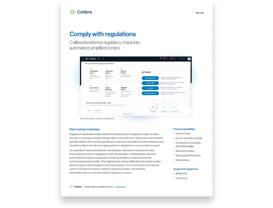 Now, because of Collibra’s interconnections within and between the central layers, we can quickly and easily trace where the data comes from and who manages it, to enable e.g. accurate liquidity risk assessment.